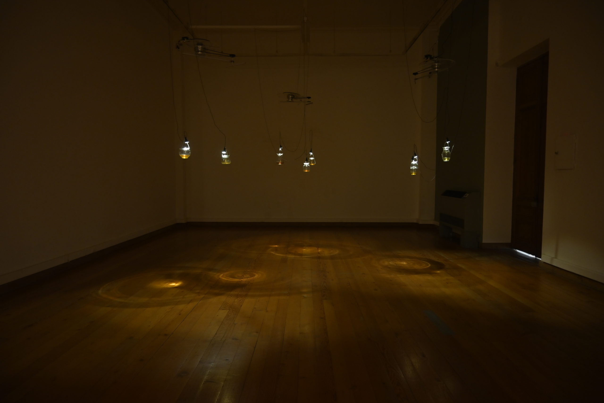 La obra se configura mediante el acto de dirigir luz y proyectar a través del agua, figuras circulares sobre el suelo. Acción que es realizada sobre ocho frascos de vidrio con té de diferentes hierbas: manzanilla, boldo, rosa mosqueta, las cuales tienen una relación directa con el sol y que han crecido gracias a esta estrella. Las hierbas son iluminadas mediante un sistema de luces que recrea movimientos similares a las estrellas binarias que orbitan -entre sí- en la bóveda celeste. El movimiento oscilatorio, permite que los círculos proyectados se entrelacen y sus imágenes se crucen, desenfocando su límite y provocando una forma no definida, que confunde y une sus cuerpos circulares.