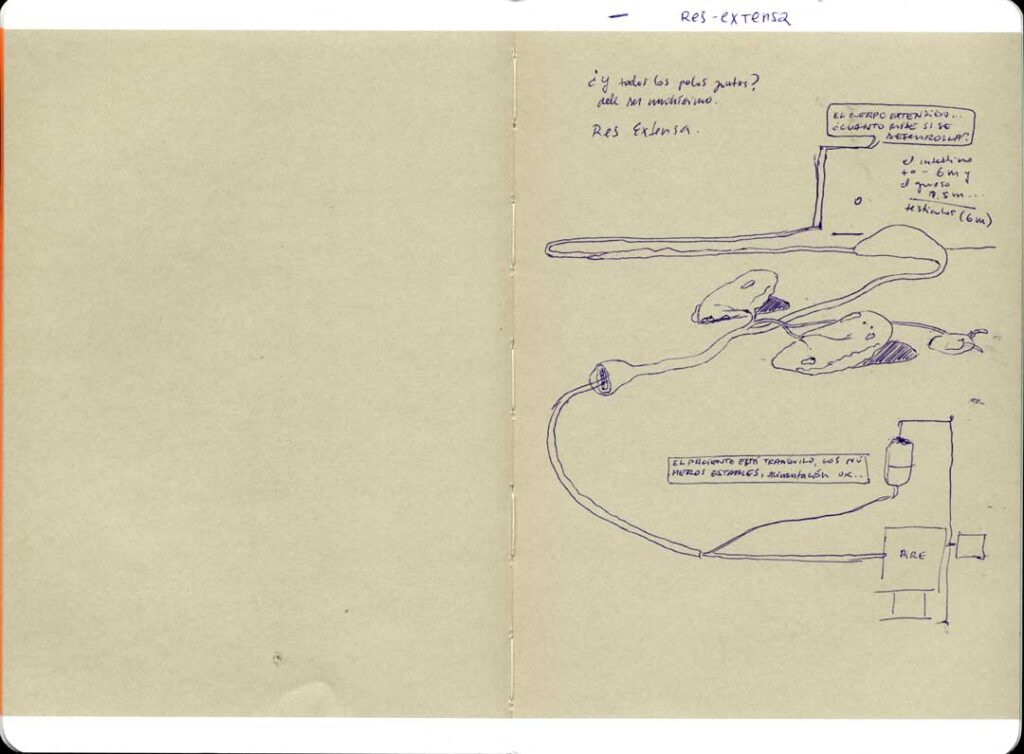 En este bloc de notas, Cea registra ideas, esquemas y conexiones: fragmentos de historia, mapas imposibles, apuntes anatómicos y reflexiones en torno a la vida y a la muerte.