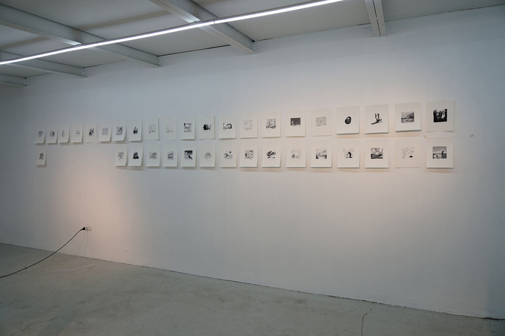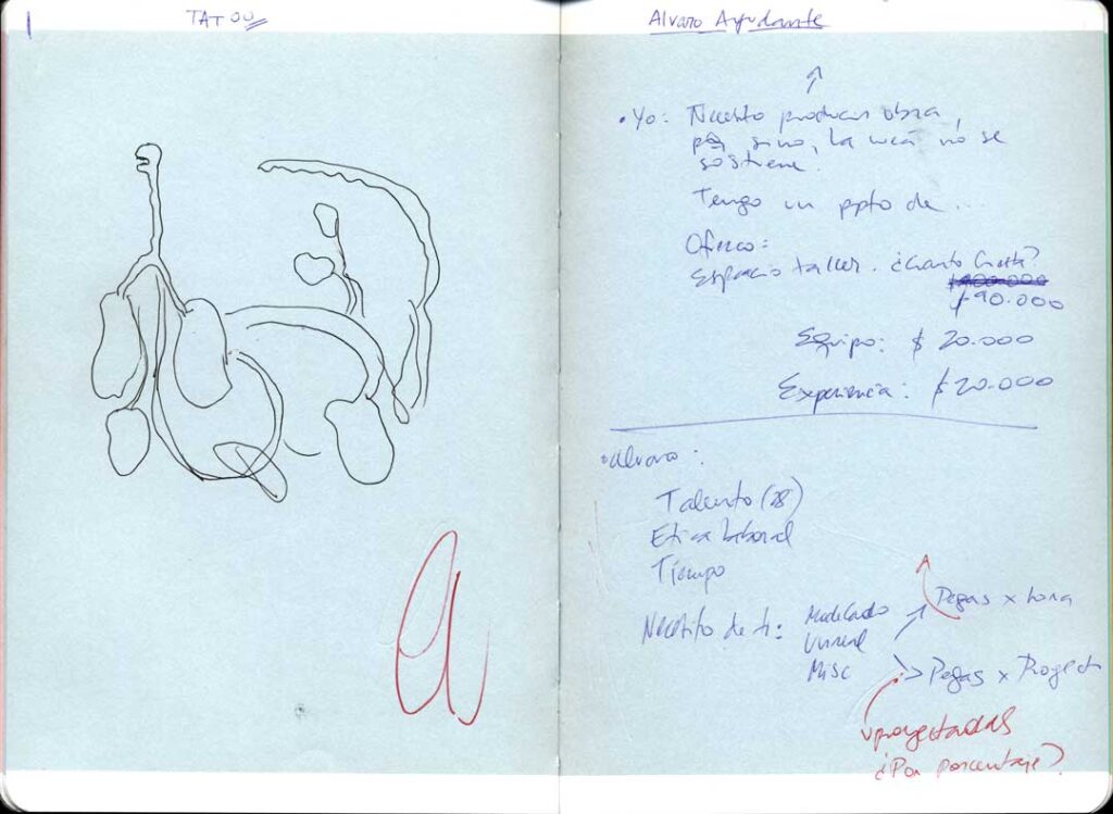 El proyecto nació durante la pandemia, cuando Cristóbal Cea se vio forzado a abandonar su taller y encontró en el dibujo diario una forma de resistir el aislamiento. De esas conversaciones telefónicas surgieron imágenes espontáneas, órganos suspendidos y la idea de un cuerpo extendido: un cuerpo que respira “por funcionar”, sostenido por sistemas de soporte vital como metáfora de supervivencia. La exposición es, así, un archivo de ese tiempo detenido: un tránsito entre la intimidad del confinamiento y la espacialidad pública de la galería, entre la fragilidad biológica y la persistencia de lo virtual.