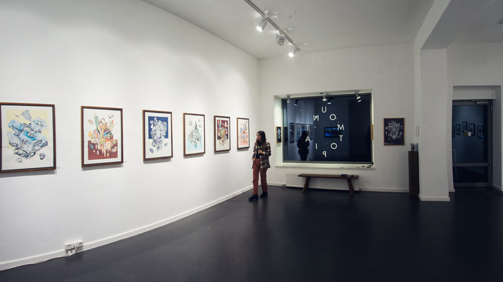 En Berlín, la exposición se complementó con un teaser dirigido por el colectivo chileno It’s Not Another Shot, filmado en Chile en enero de 2019, que reintrodujo el imaginario de la cordillera desde una perspectiva cinematográfica. Estas colaboraciones permitieron que Mountopia funcionara no solo como serie de ilustraciones, sino como un proyecto expandido, entre dibujo, paisaje y medios audiovisuales.