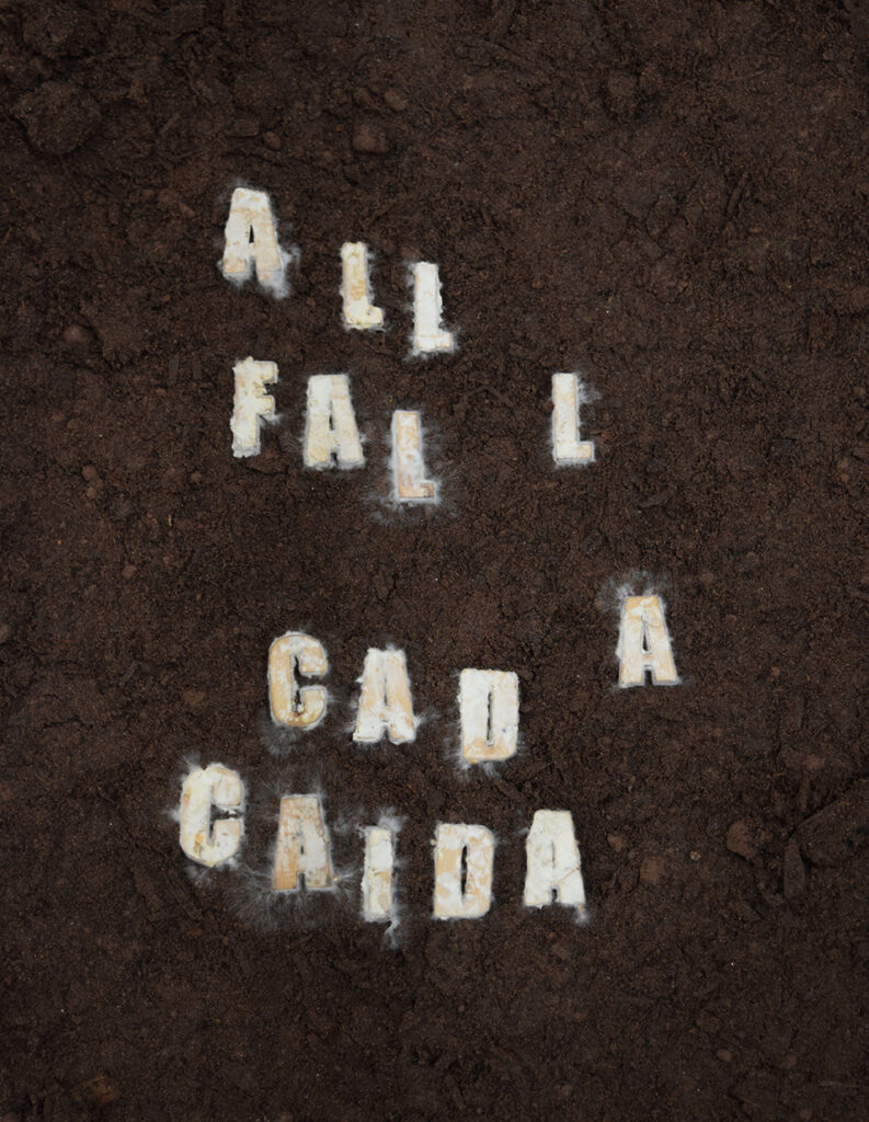 “All Fall / Cada Caída” es una colaboración con Luna Montenegro y Adrian Fisher, autores del texto que Rodrigo Arteaga utilizó como base para su poema fúngico.
