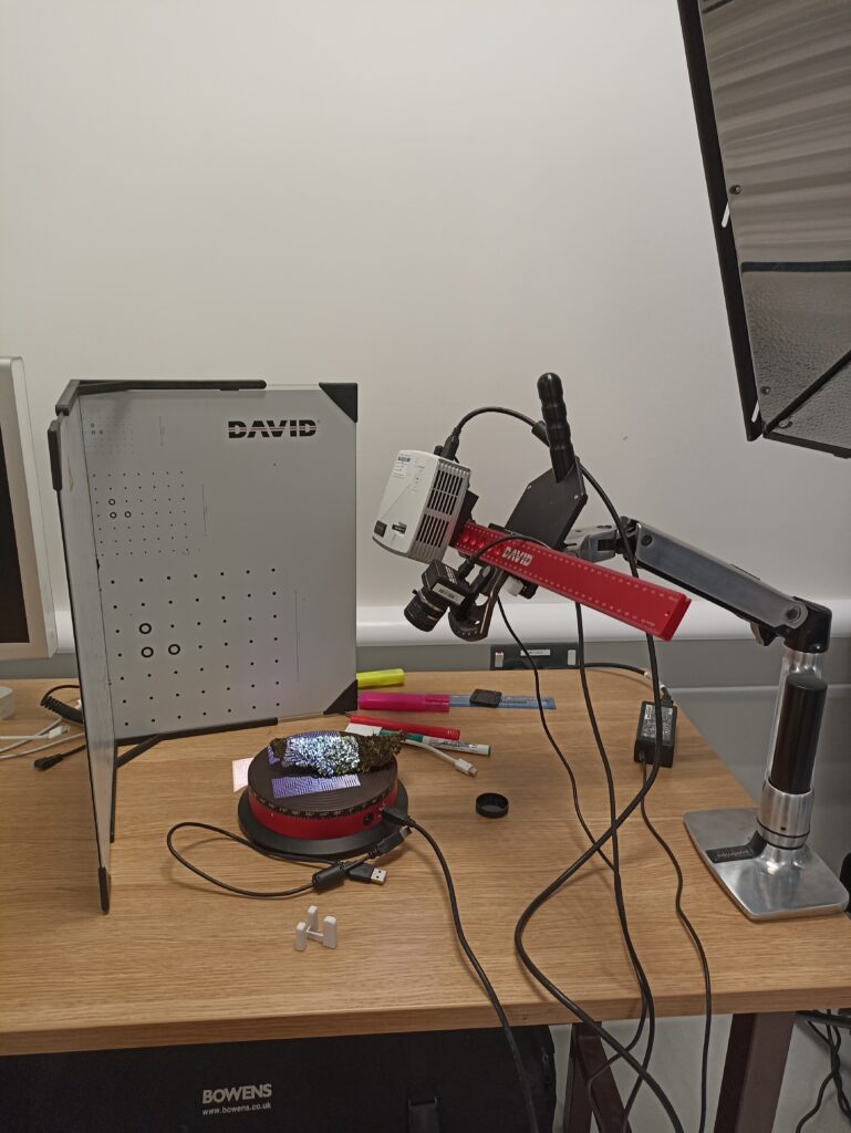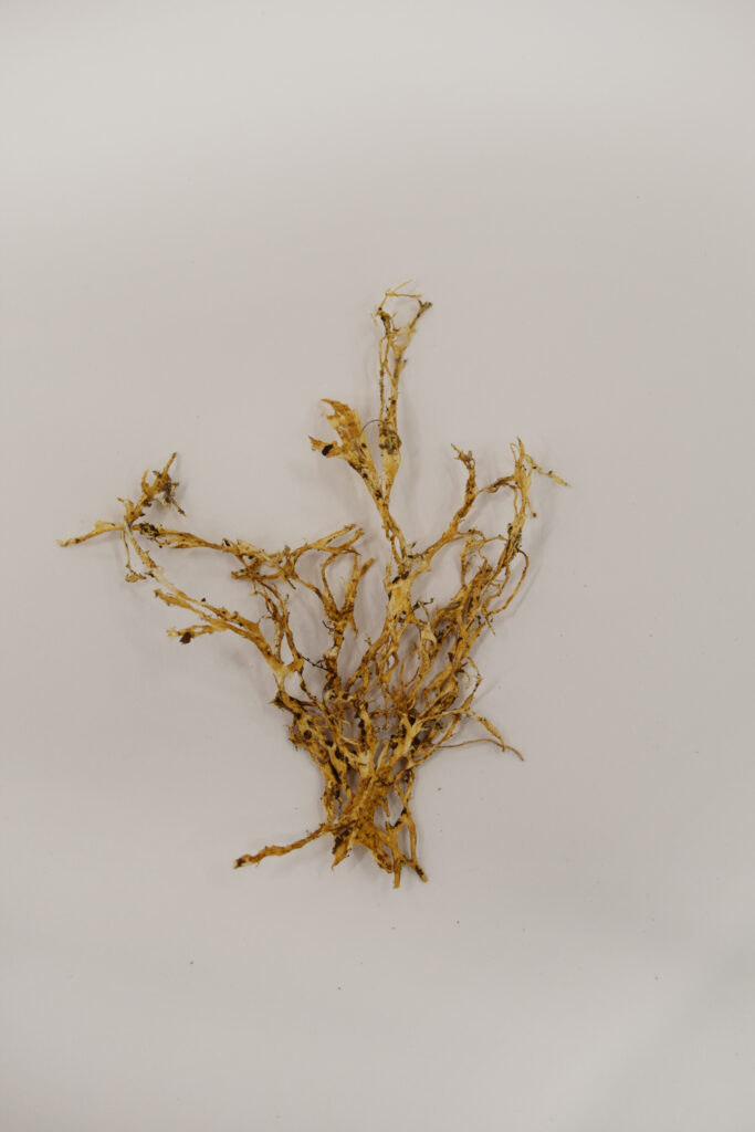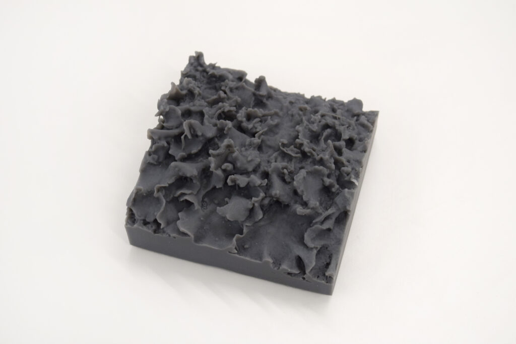 Otro componente singular de este proceso fue el registro tridimensional de un liquen mediante fotogrametría, realizado durante la residencia en el CFPR. Esta experimentación permitió trasladar al espacio digital un organismo que ya es simbiosis —hongo y alga—, expandiendo el campo de Mycelium Book hacia una dimensión escultórica y especulativa, donde lo micelial se piensa también como modelo tecnológico y simbiótico.