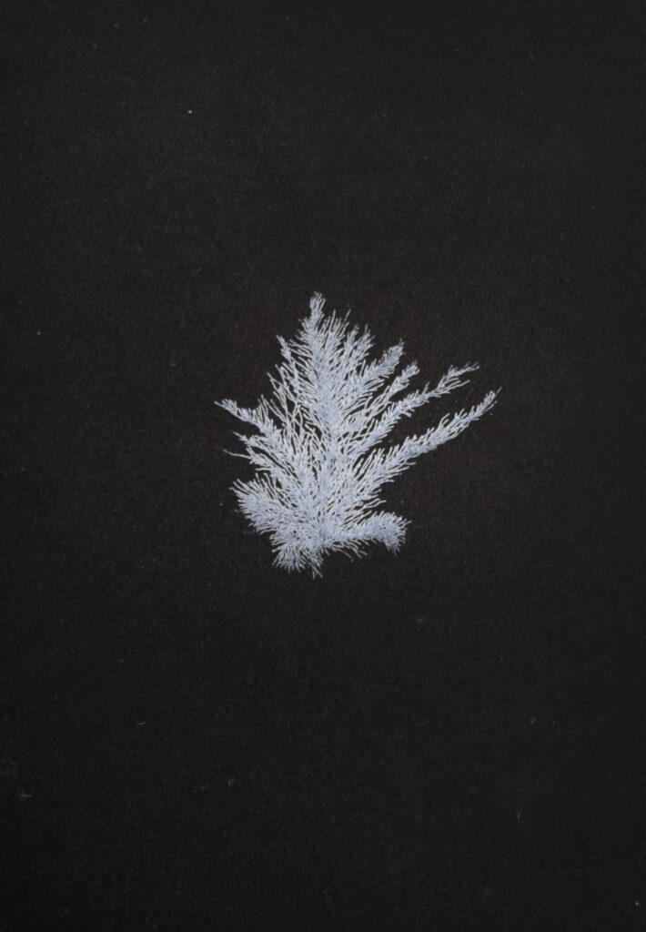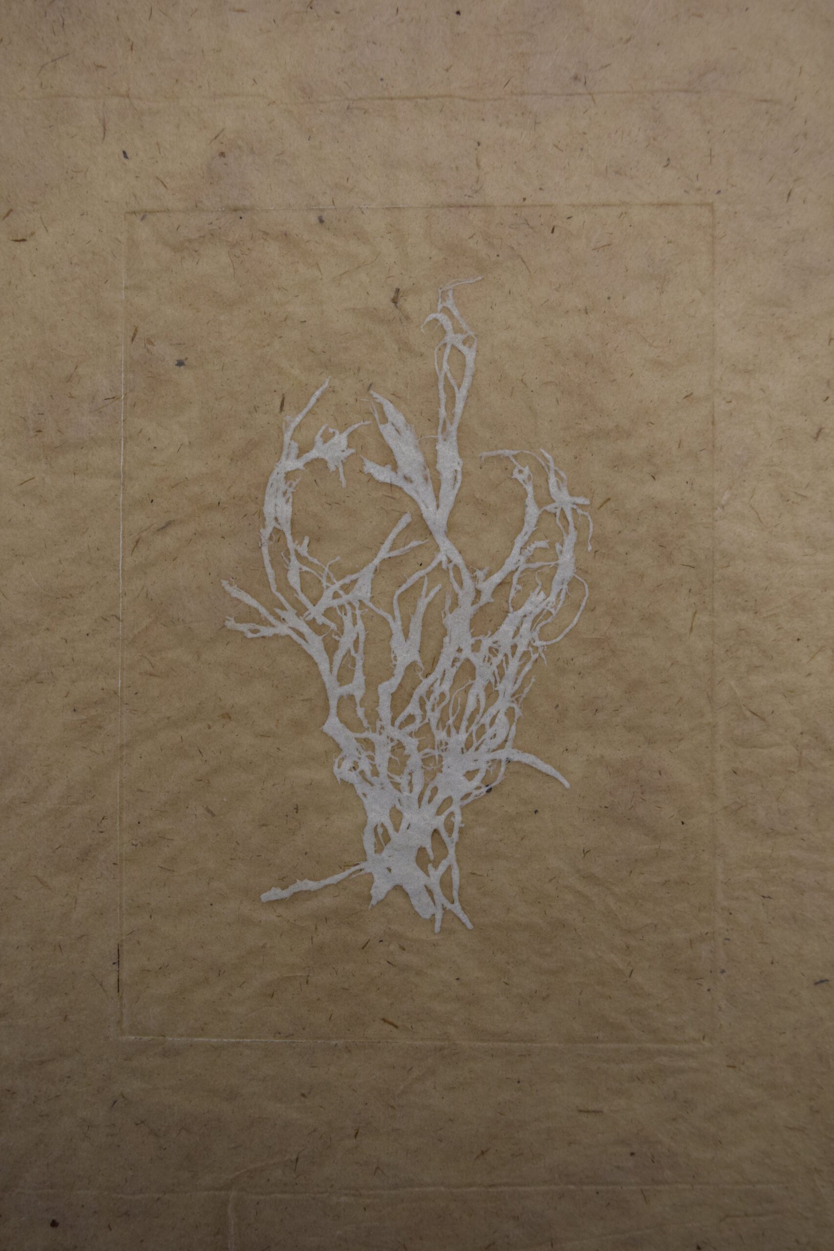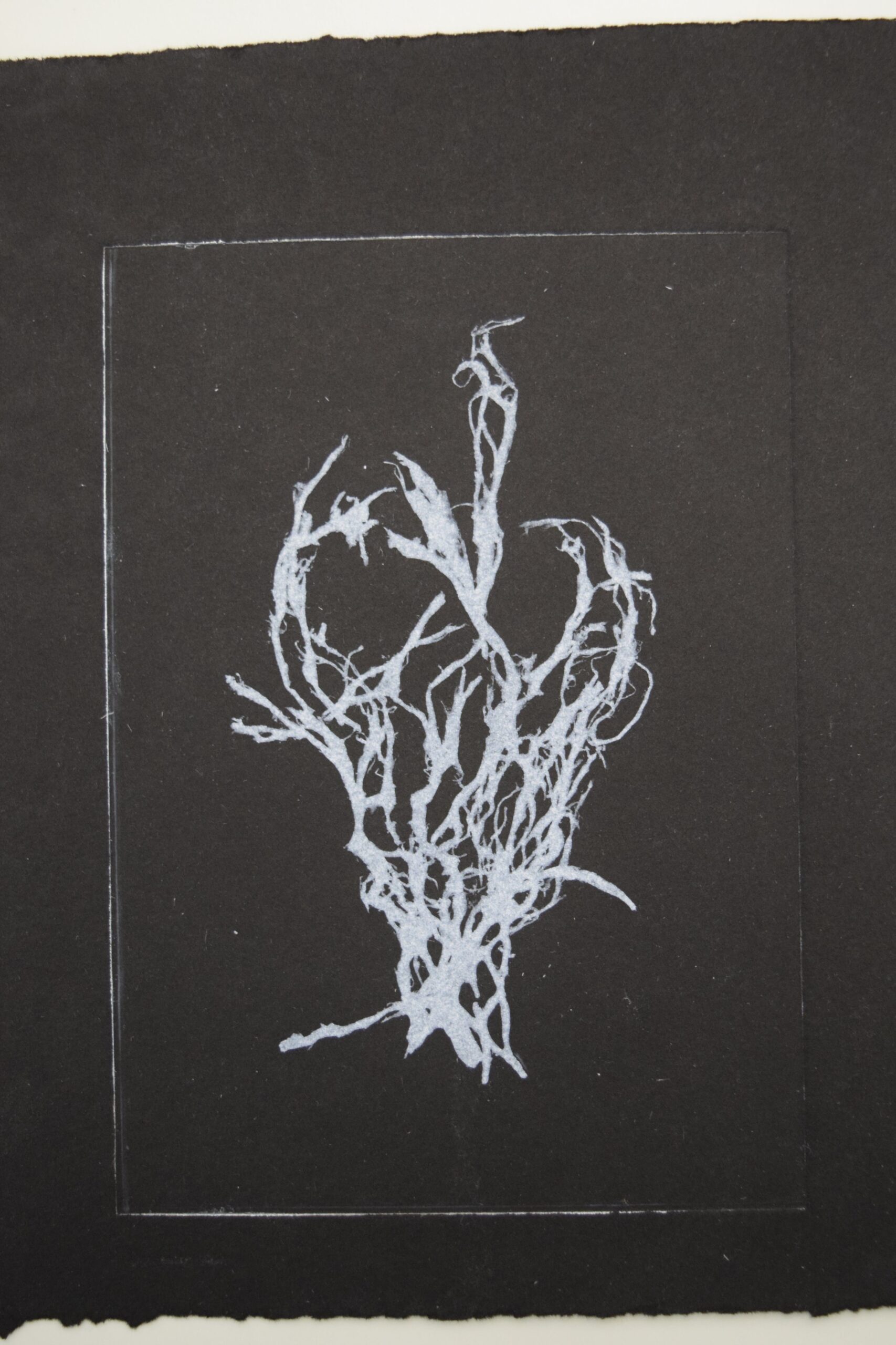 • 1 impresión de hoja recortada a mano, fotopolímero y aguafuerte sobre papel Somerset (25 x 16,5 cm).
