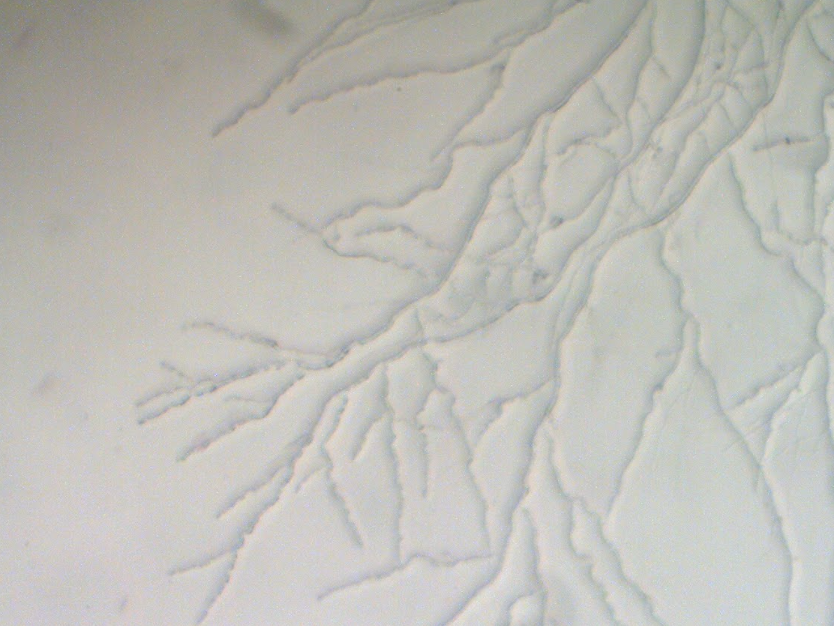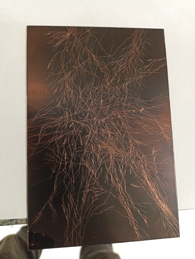La residencia se convirtió en una constelación de experimentos simultáneos: aguafuertes que imitaban redes miceliales observadas al microscopio, micelios expuestos directamente sobre placas fotosensibles, letras de madera inoculadas con hongo ostra para escribir “poemas fúngicos”. Como el micelio mismo, los proyectos crecieron en múltiples direcciones, generando conexiones con impresores, científicos y otros artistas. En ese ecosistema colaborativo, Mycelium Book tomó forma: no como un libro lineal, sino como un archivo vivo que recoge la energía del laboratorio, el bosque y la práctica artística en un solo gesto.