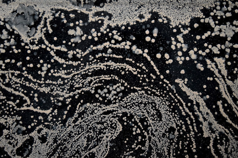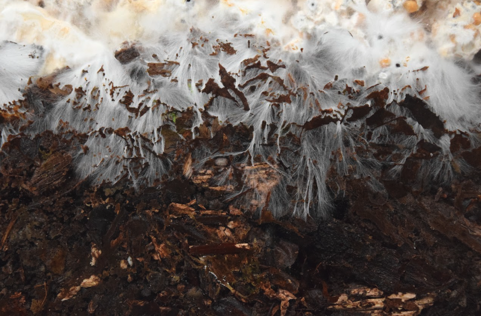 Durante su residencia en el Centre for Print Research, Rodrigo Arteaga transformó el taller de impresión en un laboratorio vivo, un punto de encuentro entre el bosque y el estudio. Cada día recolectaba muestras de hongos en los alrededores de Bristol: Leigh Woods, Snuff Mills, Stoke’s Park, para luego cultivarlas en placas de Petri, biobandejas y vitrinas de vidrio. La rutina de caminar, observar, oler y registrar se convirtió en un ritual de aprendizaje: dejar que el micelio marcara el ritmo, aceptar la incertidumbre de los procesos vivos y permitir que las ideas se expandieran como esporas al vuelo.
